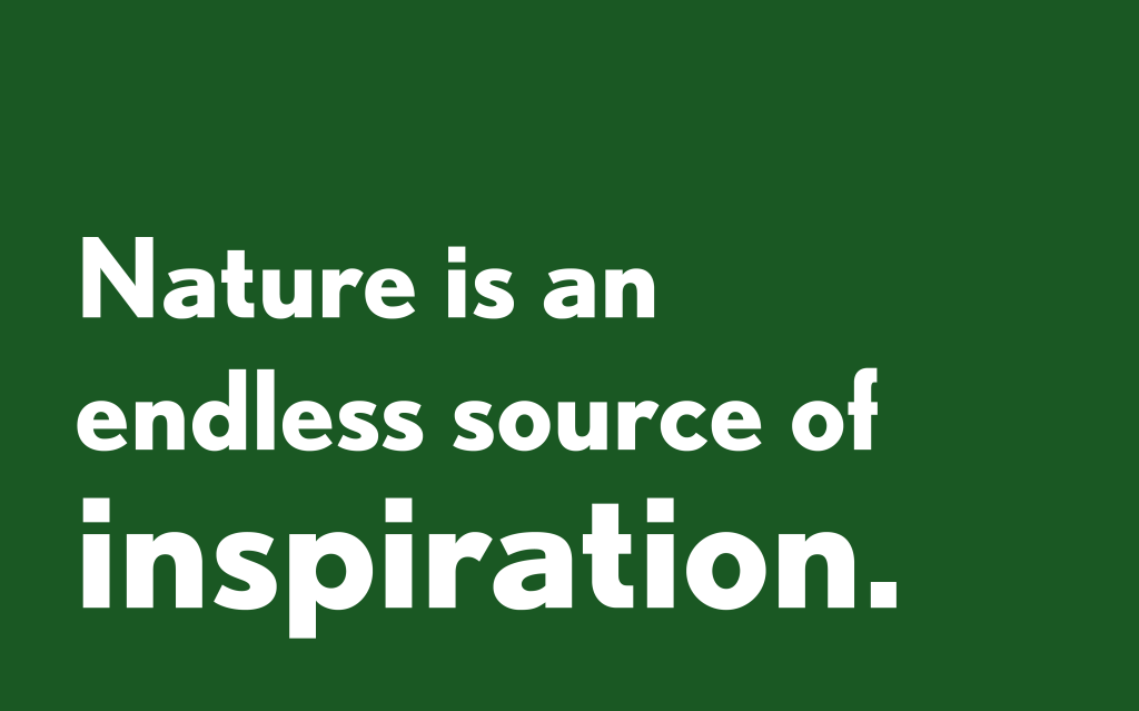 Her interest in nature and how parts of it can be used to influence science and design is fascinating. I like the idea that you can collaborate with nature and learn so much from it if you take the time to look, so I want this to be a big part of my project.