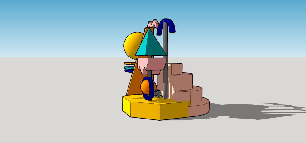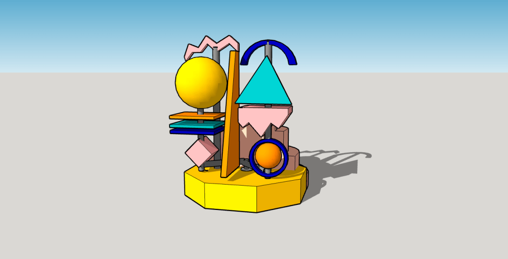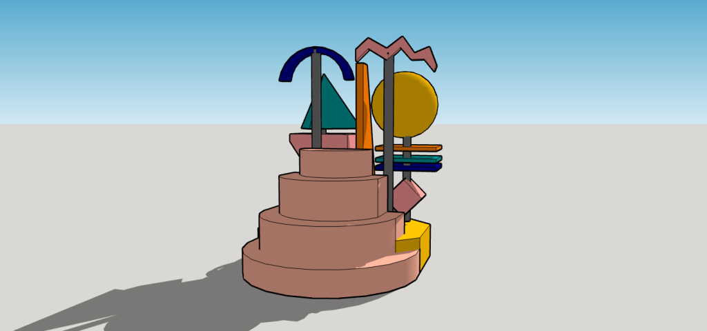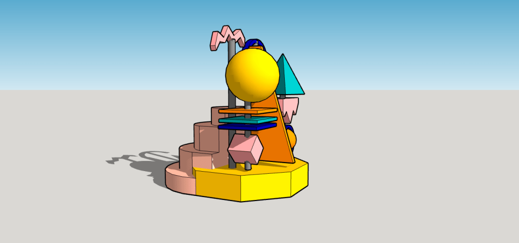 I have started to feel quite happy with the look and design of my installation, but it is hard to really understand what it will look like in 3D. I decided to try and create a basic 3D rendering of the design. After speaking to others, i chose sketchup as the tool to use. Having never worked in 3D before it was a very steep learning curve and involved a lot of youtube tutorials to even work out how to use Sketchup. However, after a lot of failed attempts I managed to create a (slightly wonky) 3D rendering of what I want my installation to roughly look like.