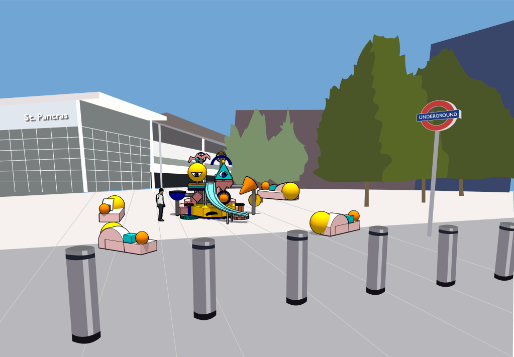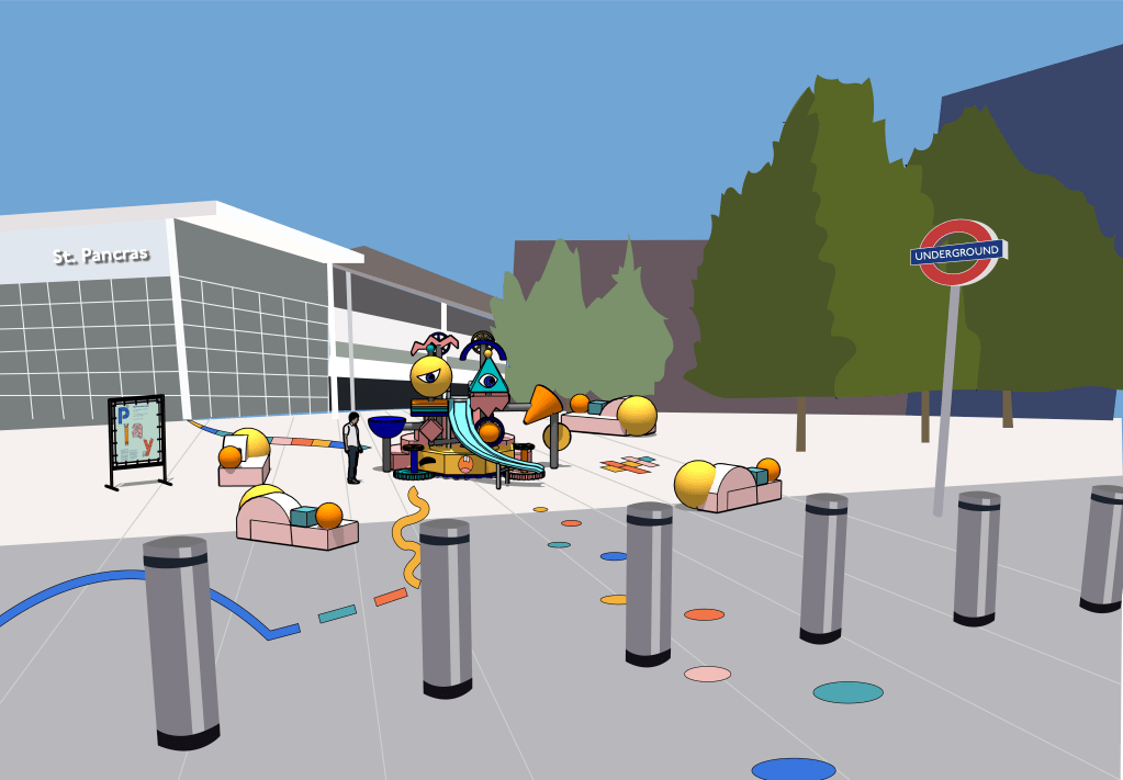 You’ve got it pictured facing directly away from the station – I wondered about the orientation, and what the thinking was there? My instinct would be that people going towards a station are probably going to be more likely to be in a rush, and less likely to linger, but I definitely don’t have any stats on that, it’s just a feeling! – Holly Gramazio, Industry Expert Play Designer