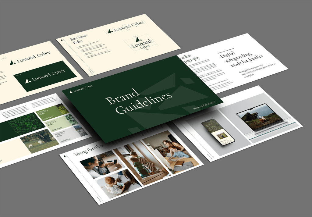 The project delivered a full brand identity, a comprehensive brand guidelines document, and a website that brought the system to life. Every element — from the mark to the type to the image style — works together to position Lomond Cyber as a business that genuinely knows its field, and that families can trust with something that matters.
