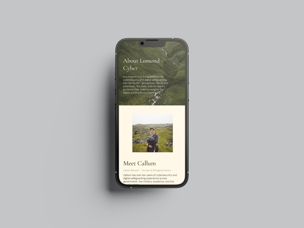 Lomond Cyber is a new cybersecurity company focused on helping families navigate the growing complexity of online threats. They came to me at the very beginning — no brand, no identity, just a clear sense of purpose and a need to communicate it credibly. The challenge was to build something that felt professional and authoritative without being cold or corporate. Cybersecurity for families needed to feel approachable, not alarming.